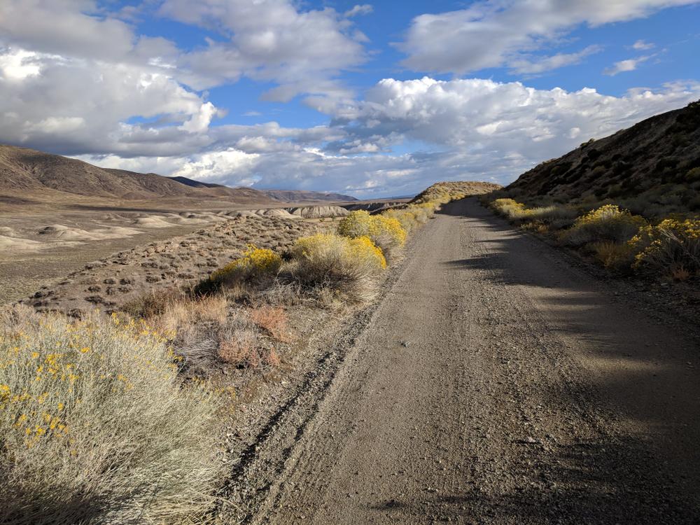 The trail begins in Wadsworth and follows along route 447 and Little Nixon rd. Half of the trail ride is spent on these roads while the other half diverts into the sagebrush. It is considered an easy to moderate trail due to washed out trail conditions and sandy areas. There are some slight elevation changes along the route as well as two fence stiles that must be climbed. Recommended bikes for this segment are mountain bikes, cyclocross bikes and gravel bikes.