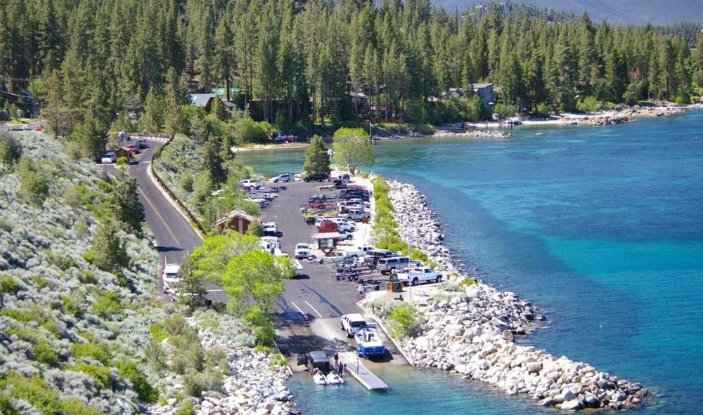 Trailer parking and boat launch facility near historic Cave Rock.