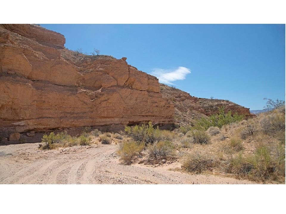 never-ending North trending parallel mountain ranges, while the Colorado Plateau lies to the East with its famous red sandstone. Looking at the road cut along the I-15 traveling along the Virgin River Gorge gives us as extensive look back through time to layers of ancient shallow sea floor. As you travel North, you are moving forward through time and towards a terrestrial depositional environment.