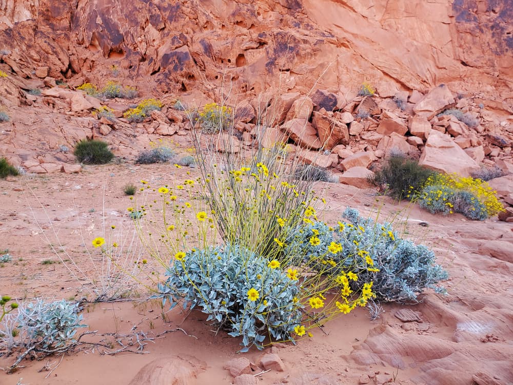 This sandy desertscape is home to two of Nevada’s protected reptiles, Gila Monsters and Desert Tortoises. Both species have specialized adaptations to survive in the hot, dry climate. Gila monsters get most of their water from their prey, hide underground during the hottest parts of the day, and store fat in their thick tails which can allow them to survive for months without food. Desert tortoises can last for up to a year without drinking water by storing and reabsorbing water from a special bladder. To avoid disturbing these creatures and their habitat, please stay on established roads and trails.