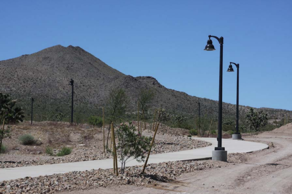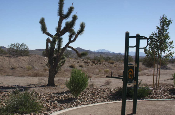 This mostly flat paved walking trail winds around the Searchlight Community Center with beautiful desert views, including Spirit Mountain. There are benches and workout stations spaced along the trail, including a picnic area and informational placards covering local nature as well as the history of the area.
