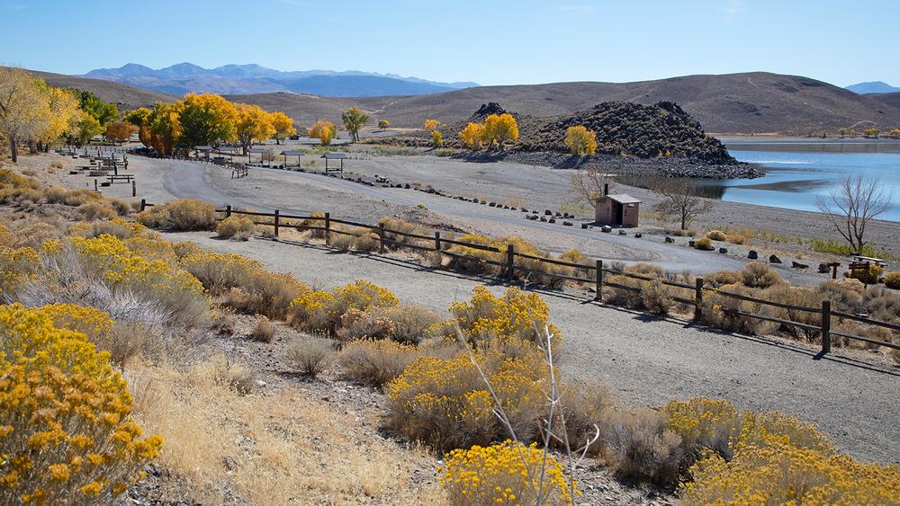 The recreation area is complete with several campsites with RV hook ups, primitive tent camping sites, a restroom with a shower and boat dock! Motorized boat use, paddling and fishing are the most common recreation activities on Topaz lake. Short walking trails follow the perimeter of the lake. Shade structures and trees around the camping area provide the only shade, it is best to pack prepared and bring sun protective clothing and temporary shade structures.